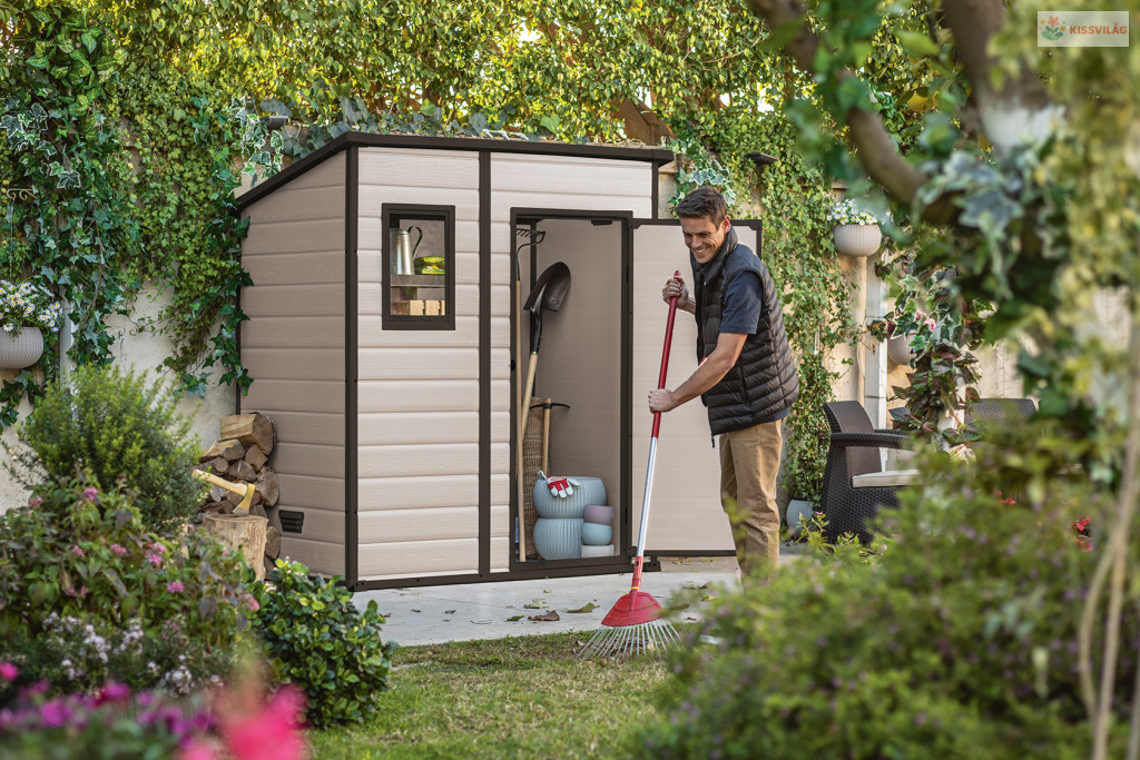 Szerszámok hevernek szanaszét a házban vagy a kertben, és a garázsban már nincs hely? A Manor 6 x 4 kerti ház optimális méretű, és nagyon egyszerűen összeszerelhető. A ház alkalmas kerti szerszámok, sportfelszerelések, medencetechnika és -felszerelés, műhelyszerszámok, valamint grillező felszerelések, beleértve a nagyobb gázgrillek tárolására is.
