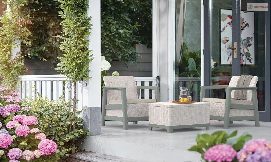 Keter Scandi kerti bútor ideális megoldás erkélyre, teraszra vagy kisebb kertbe. A skandináv stílusú design juta hatással, a fotelek 110 kg teherbírása és a praktikus tárolóasztal kényelmes környezetet teremt a mindennapi pihenéshez két személy részére.