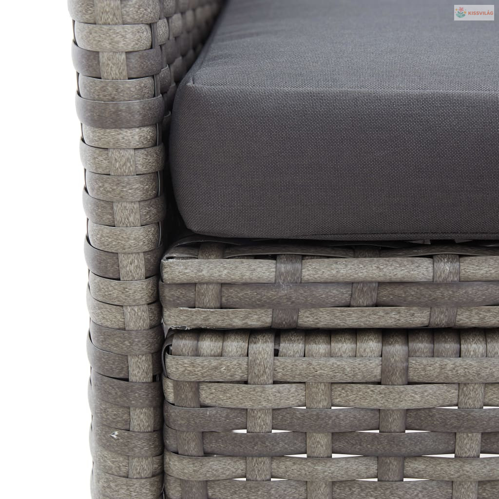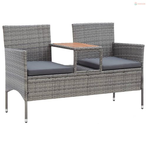 Kétszemélyes szürke polyrattan kerti pad teázóasztallal 143 cm