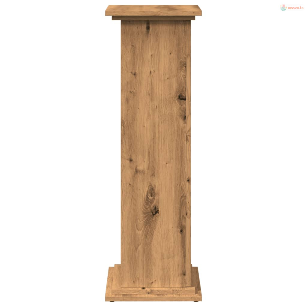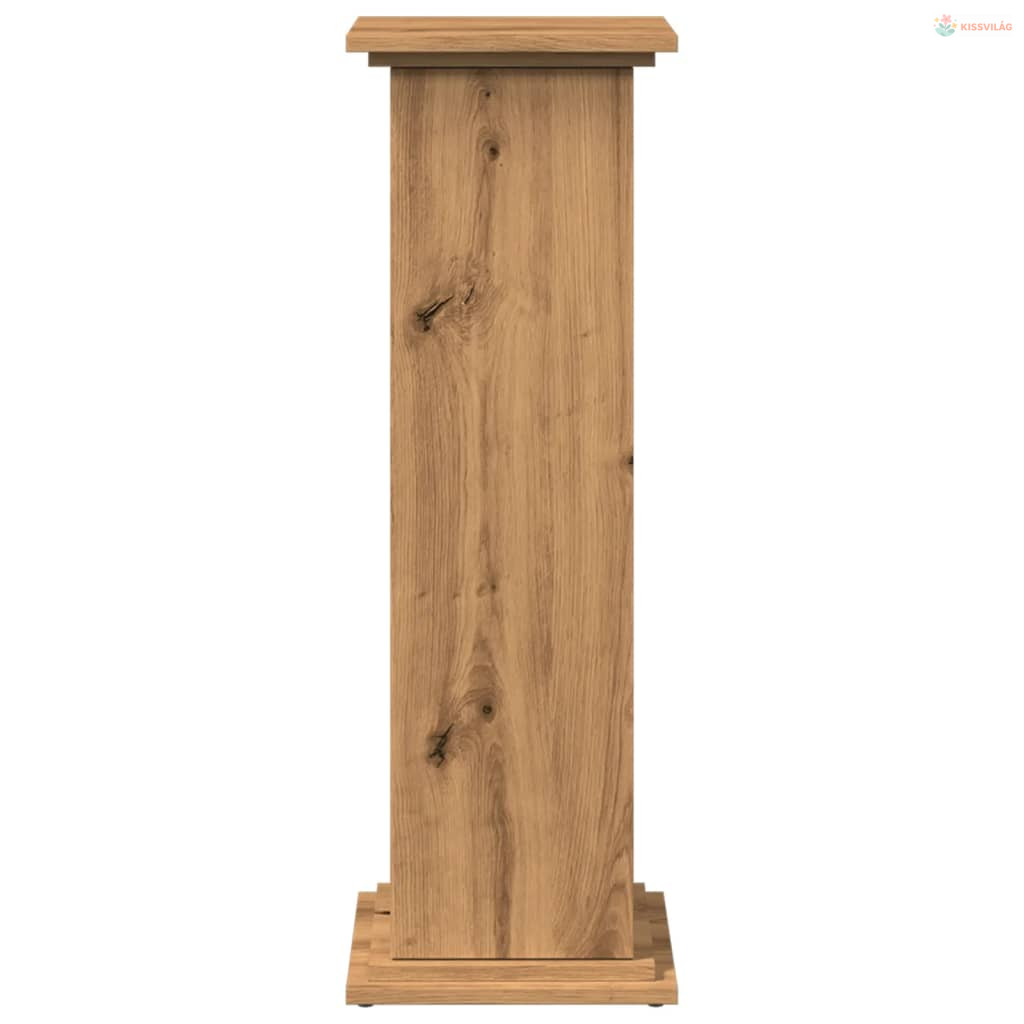 Kézműves tölgy szerelt fa bemutatóállvány tárolóval 31x30x90 cm