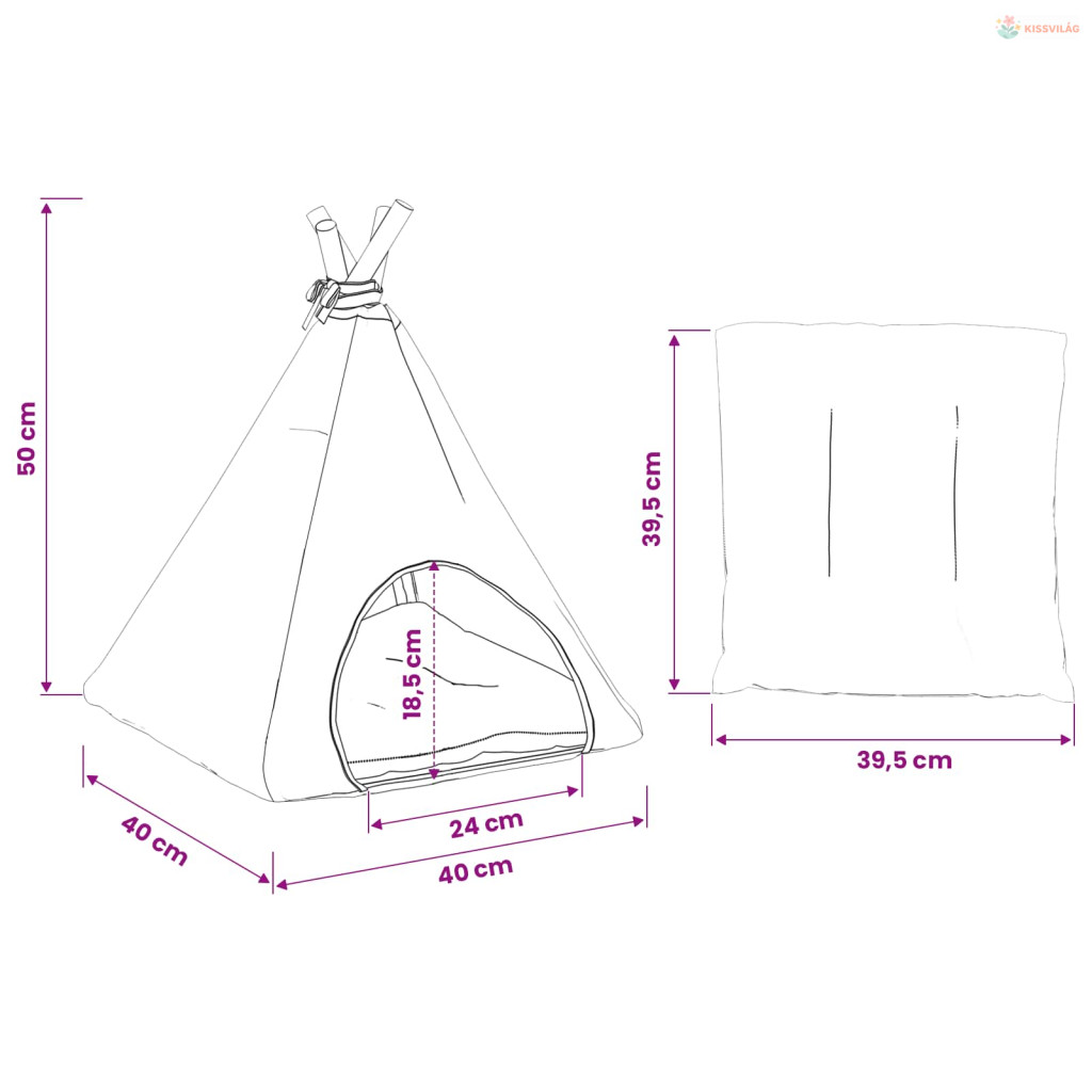 • Beltéri és kültéri használat: Ez a sokoldalú teepee sátor bármilyen környezetben használható, nyújtva egy kényelmes helyet a kisállatodnak, bárhol szükséges. Tartós anyaga ellenáll a különböző használati helyzeteknek, így tökéletes otthonok számára, akiknek belső és külső tér is van.