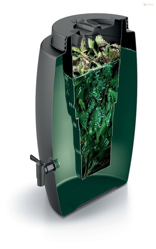 A saját műtrágya elkészítéséhez szükség lesz esővízre, amelyet a komposztálóba töltesz. A leszedegetett növényeket (például gyermekláncfű, csalán, lóhere, zsurló vagy paradicsomlevelek) a belső tartályba helyezed. Ez úgy működik, mint egy szita. Körülbelül 2-4 hét alatt kiváló minőségű folyékony trágya keletkezik. A bomlási folyamat gyorsabb, ha melegebb az időjárás.