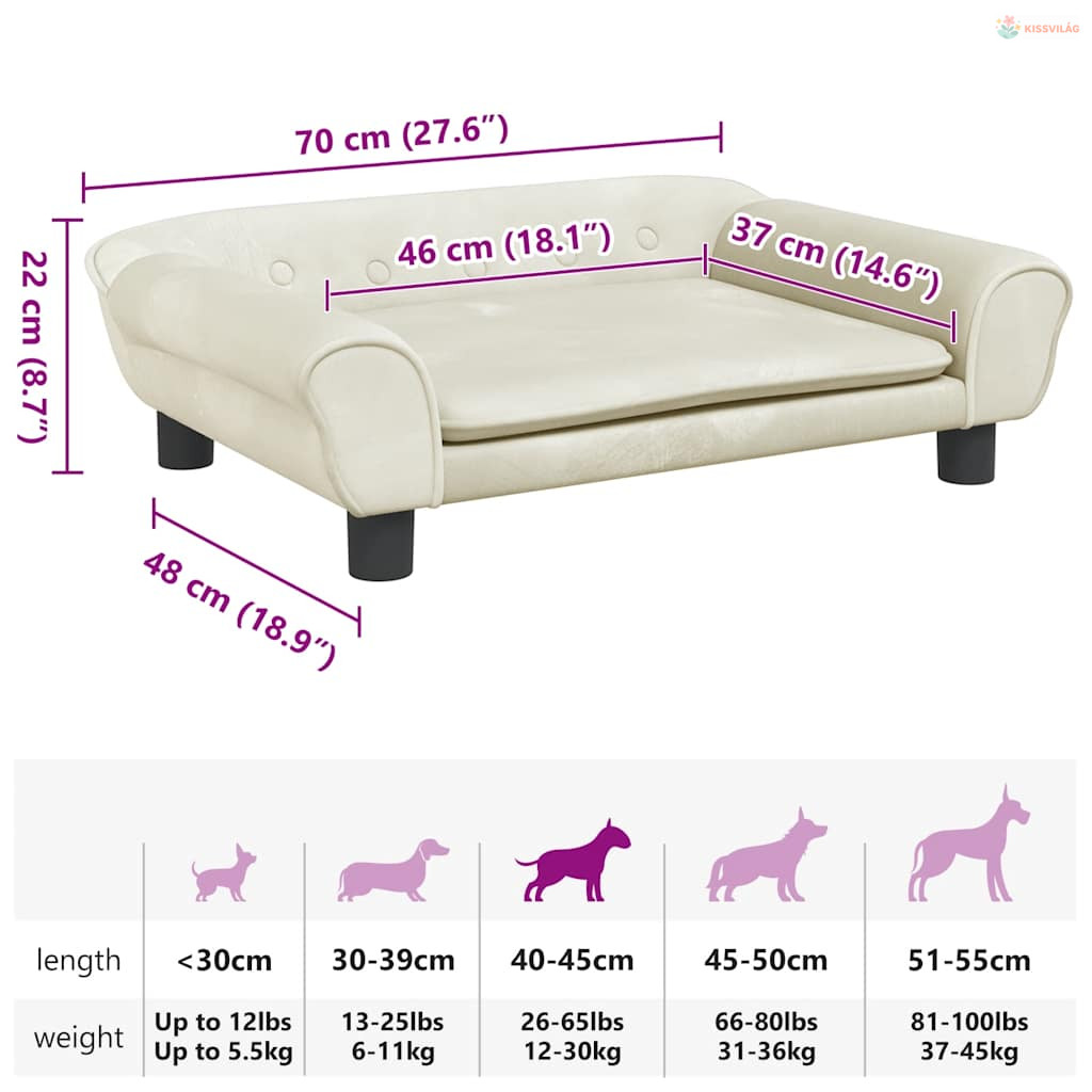 Krémszínű bársony kutyaágy 70 x 48 x 22 cm