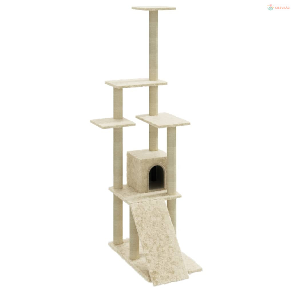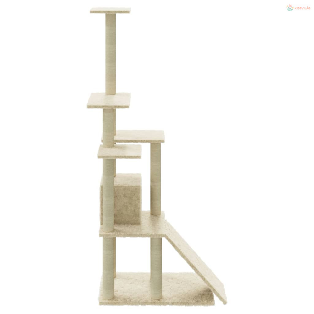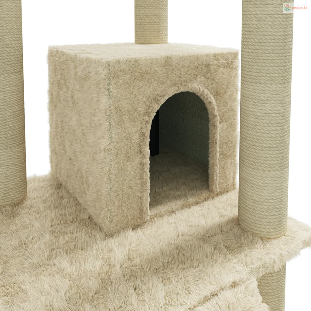 Krémszínű macskabútor szizál kaparófákkal 155 cm