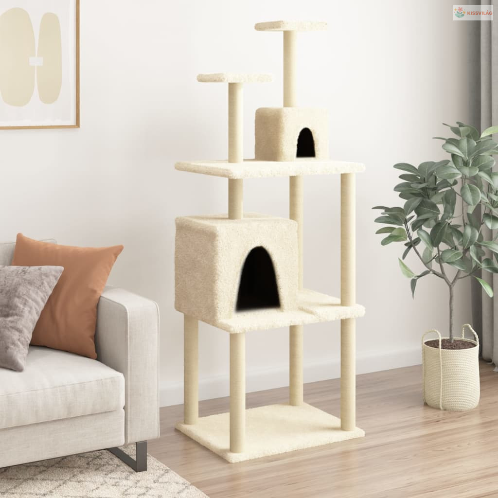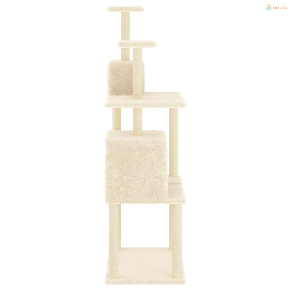 Krémszínű macskabútor szizál kaparófákkal 167 cm