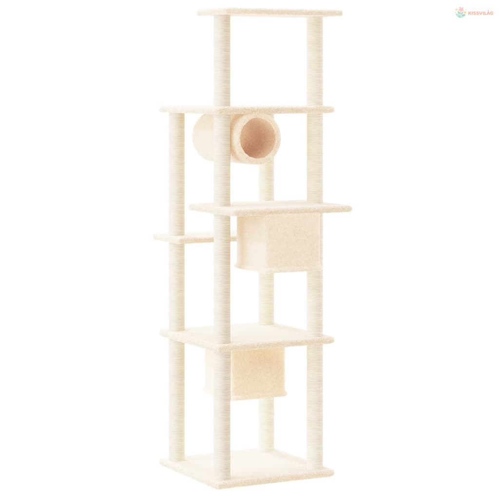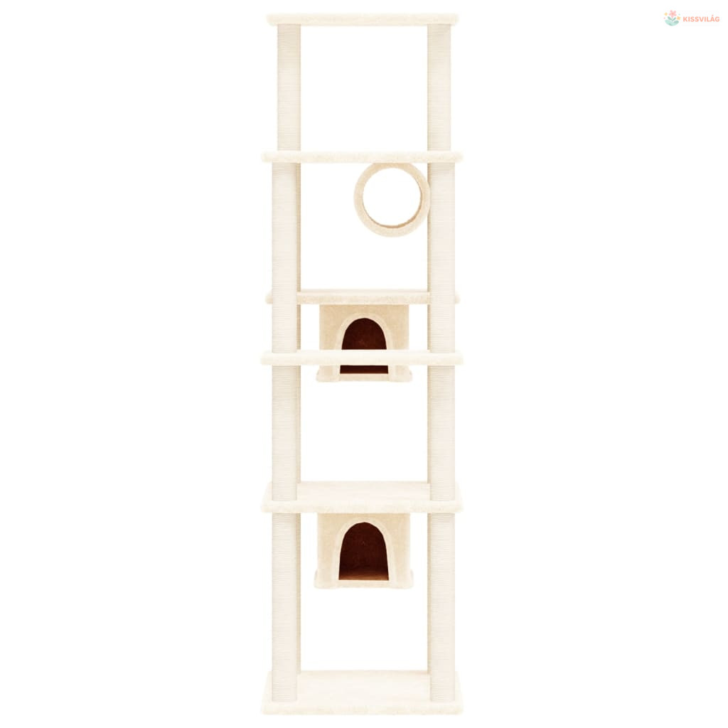 Krémszínű macskabútor szizál kaparófákkal 169 cm