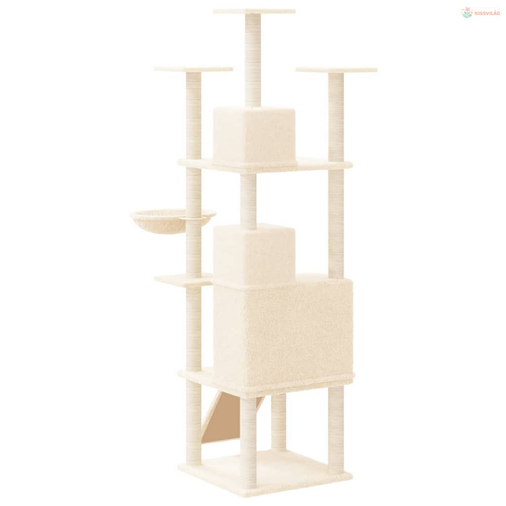 Krémszínű macskabútor szizál kaparófákkal 175 cm