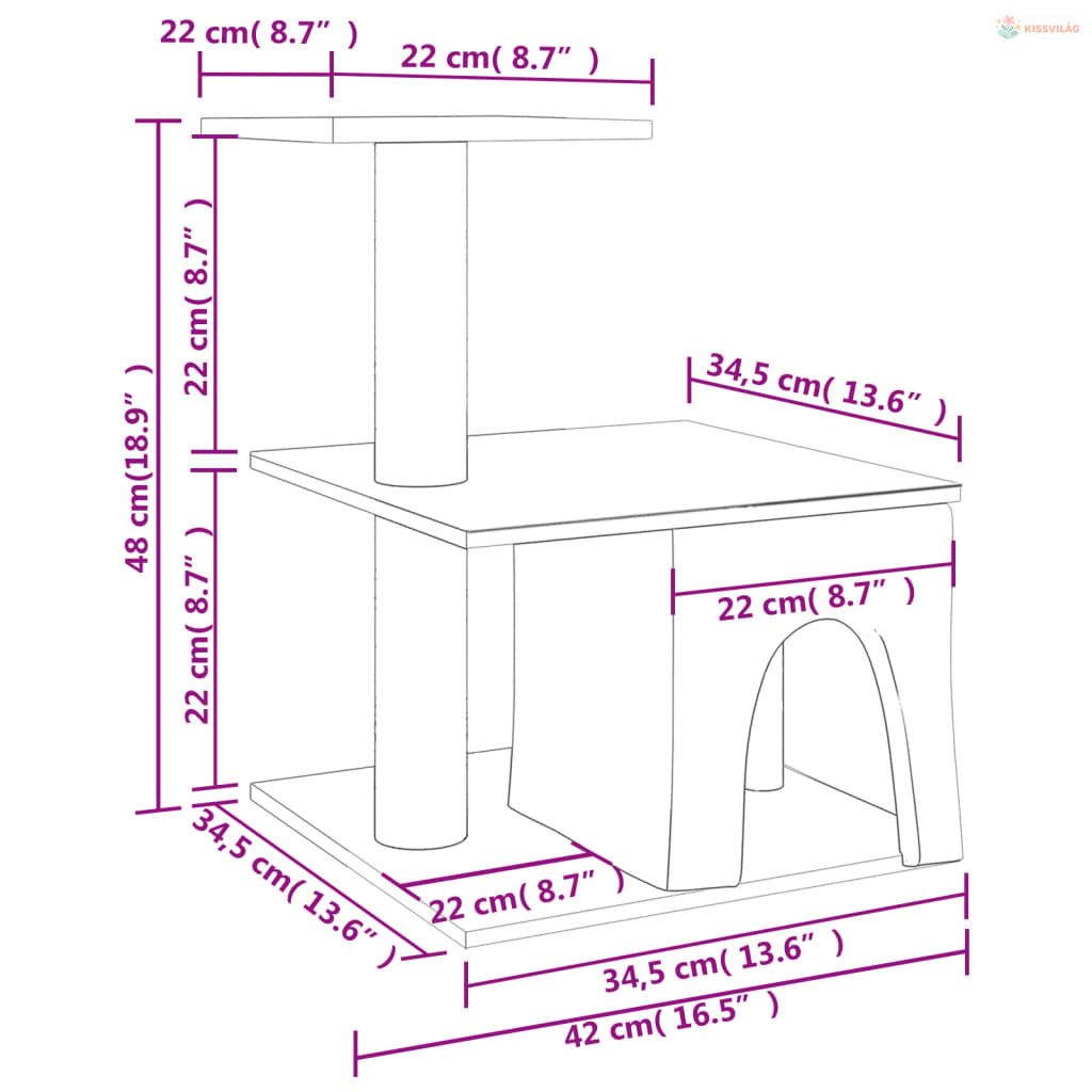 • Minden egyben macskatorony: A többszintes macskabútor egy házzal és platformmal lett ellátva, tökéletes helyet biztosítva macskáinak a mászáshoz, kaparáshoz, bujkáláshoz és pihenéshez.