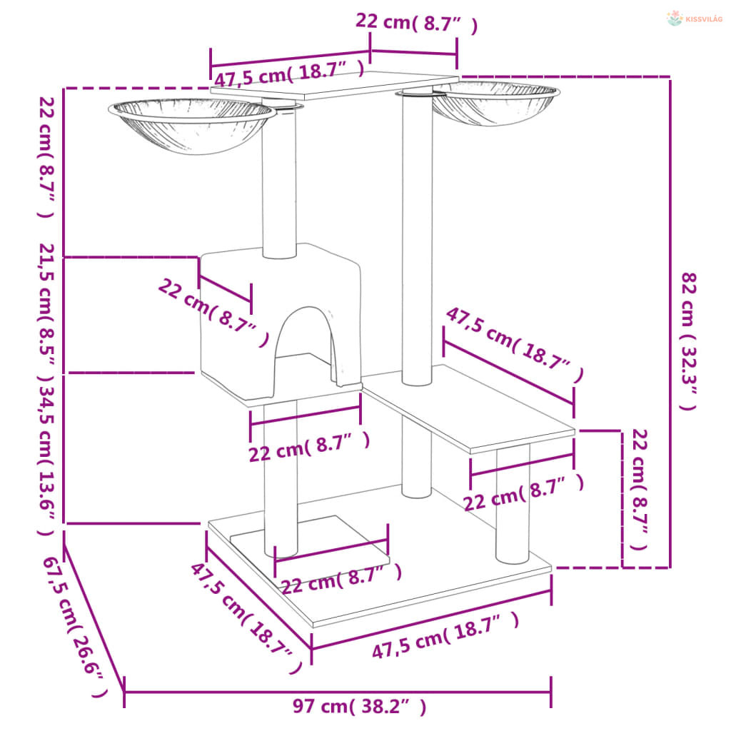 • Tartós szizáloszlopok: A kaparófa rugalmas és erős, természetes szizáloszlopai tökéletesek szeretett macskái számára, hogy kielégítsék kaparóösztönüket, és ne a bútorait karcolják meg.