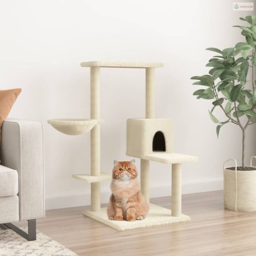 Krémszínű macskabútor szizál kaparófákkal 95 cm