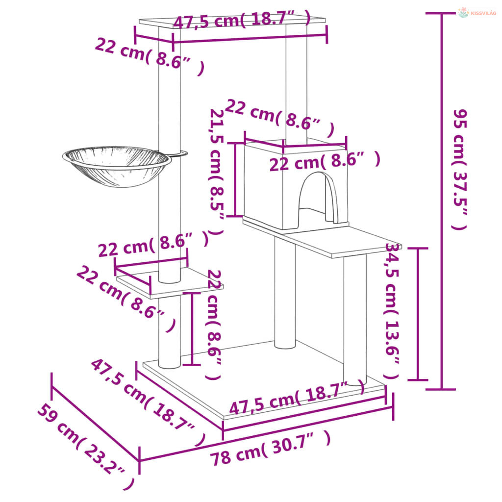 • Tartós szizáloszlopok: A kaparófa rugalmas és erős, természetes szizáloszlopai tökéletesek szeretett macskái számára, hogy kielégítsék kaparóösztönüket, és ne a bútorait karcolják meg.