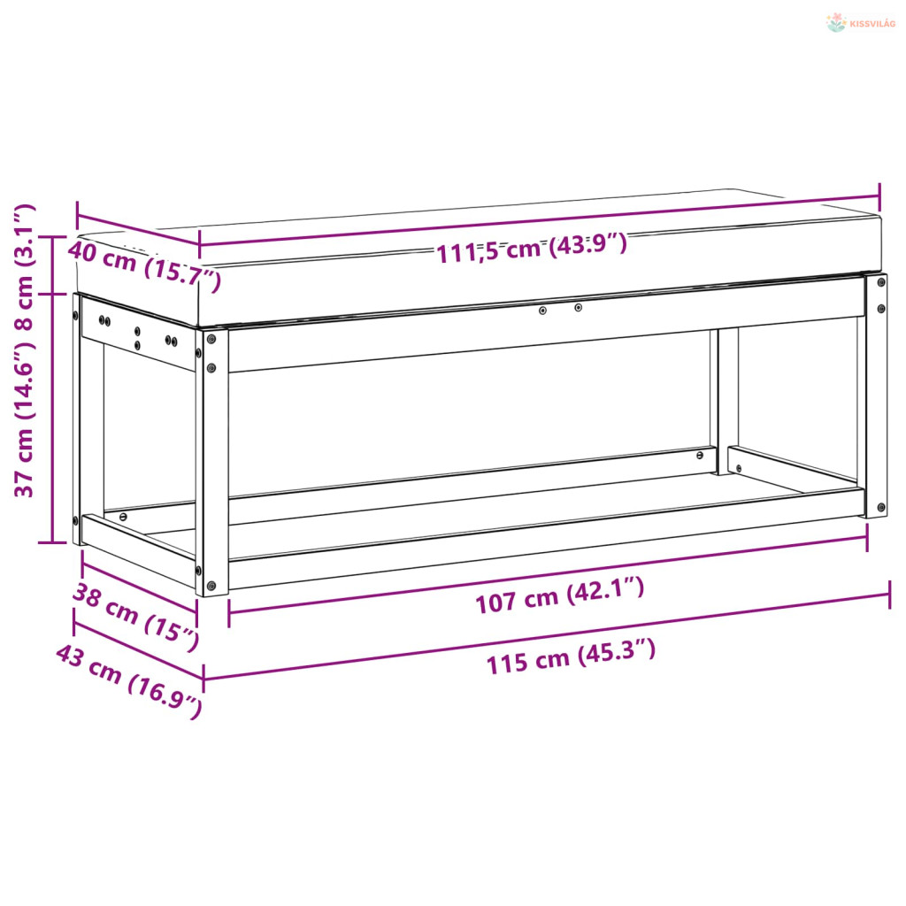 • Általános dimenziók: 115 x 43 x 45 cm (Ho x Szé x Ma)