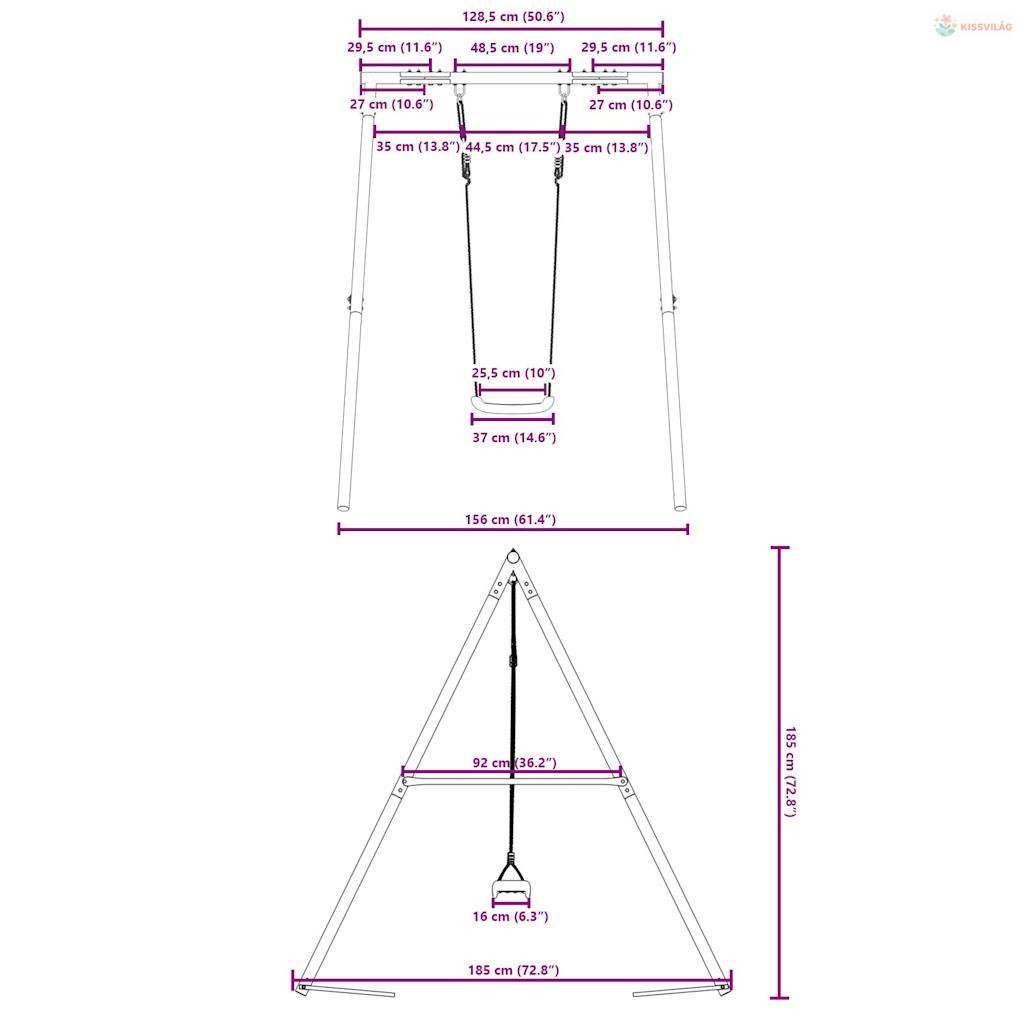 • Széleskörű felhasználás: Ez a hintaváz különféle helyeken helyezhető el, például kertben, hátsó udvaron, óvodában, játszótéren stb.