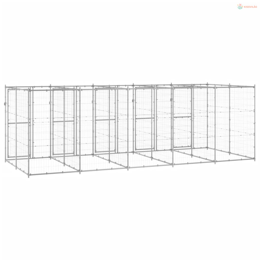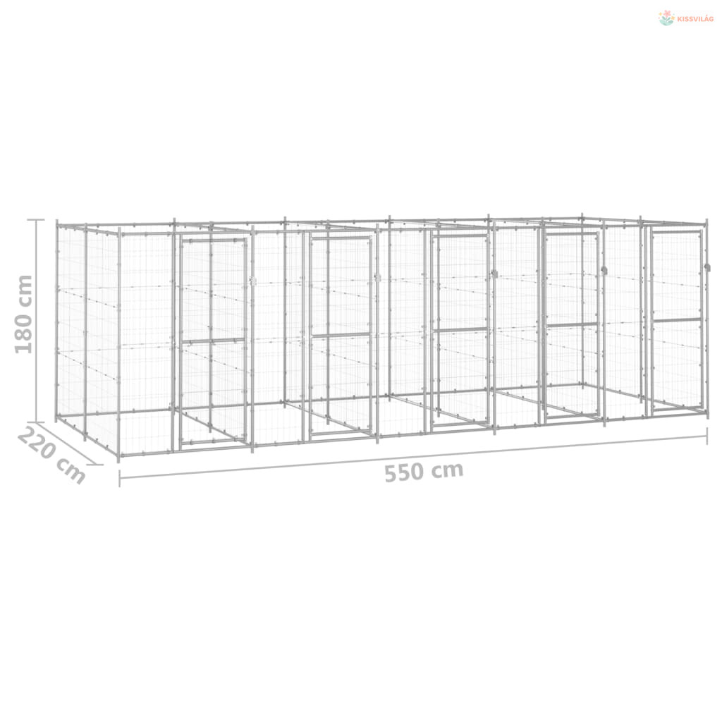 Kültéri horganyozott acél kutyakennel 12,1 m²
