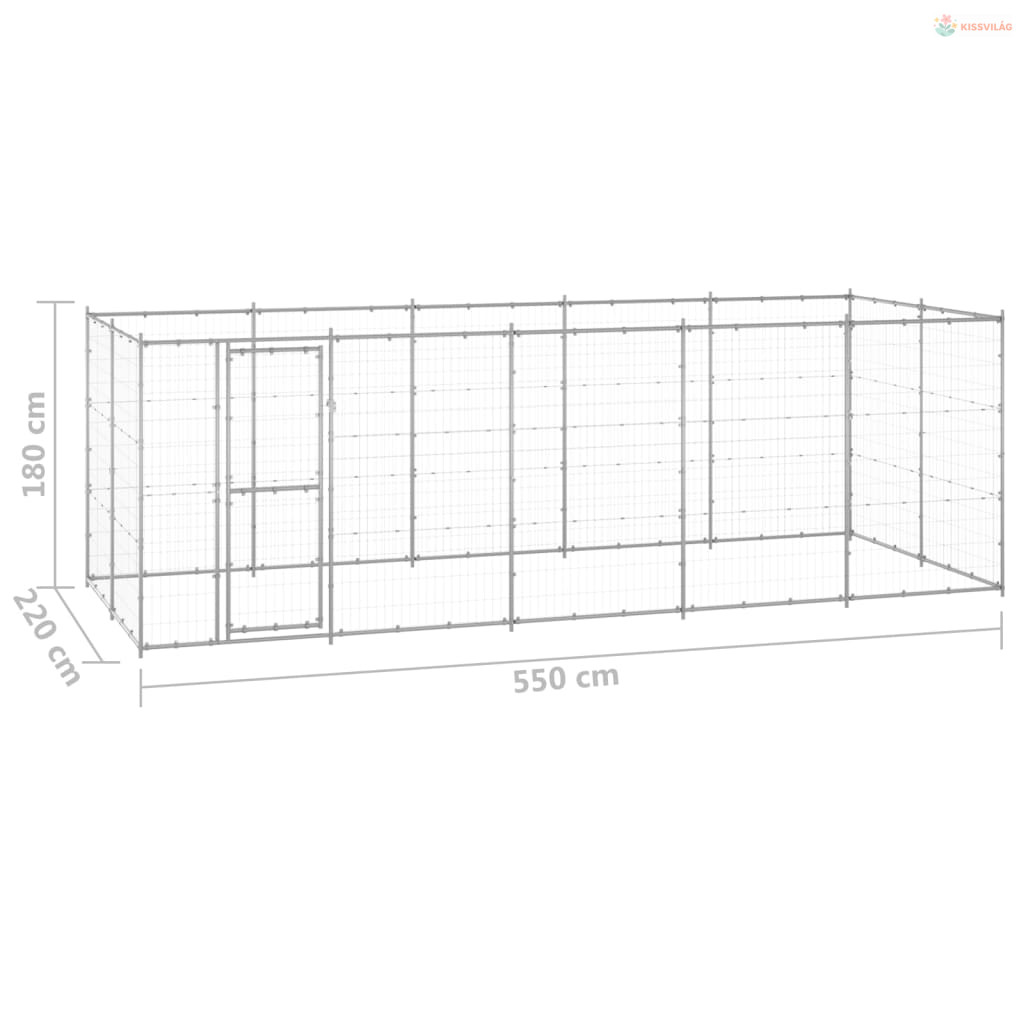 Kültéri horganyozott acél kutyakennel 12,1 m²