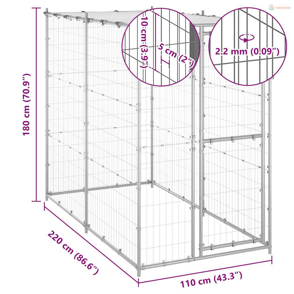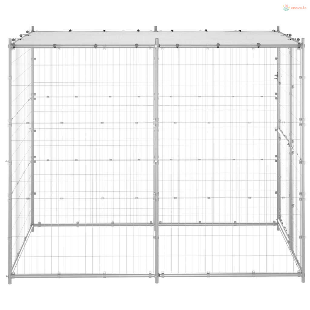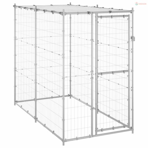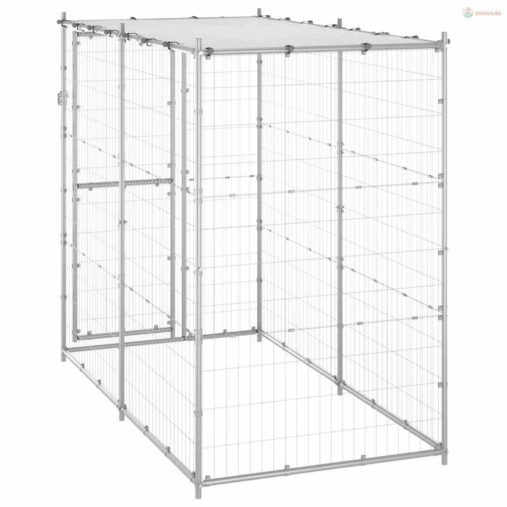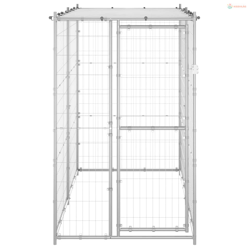 Kültéri horganyozott acél kutyakennel tetővel 110x220x180 cm