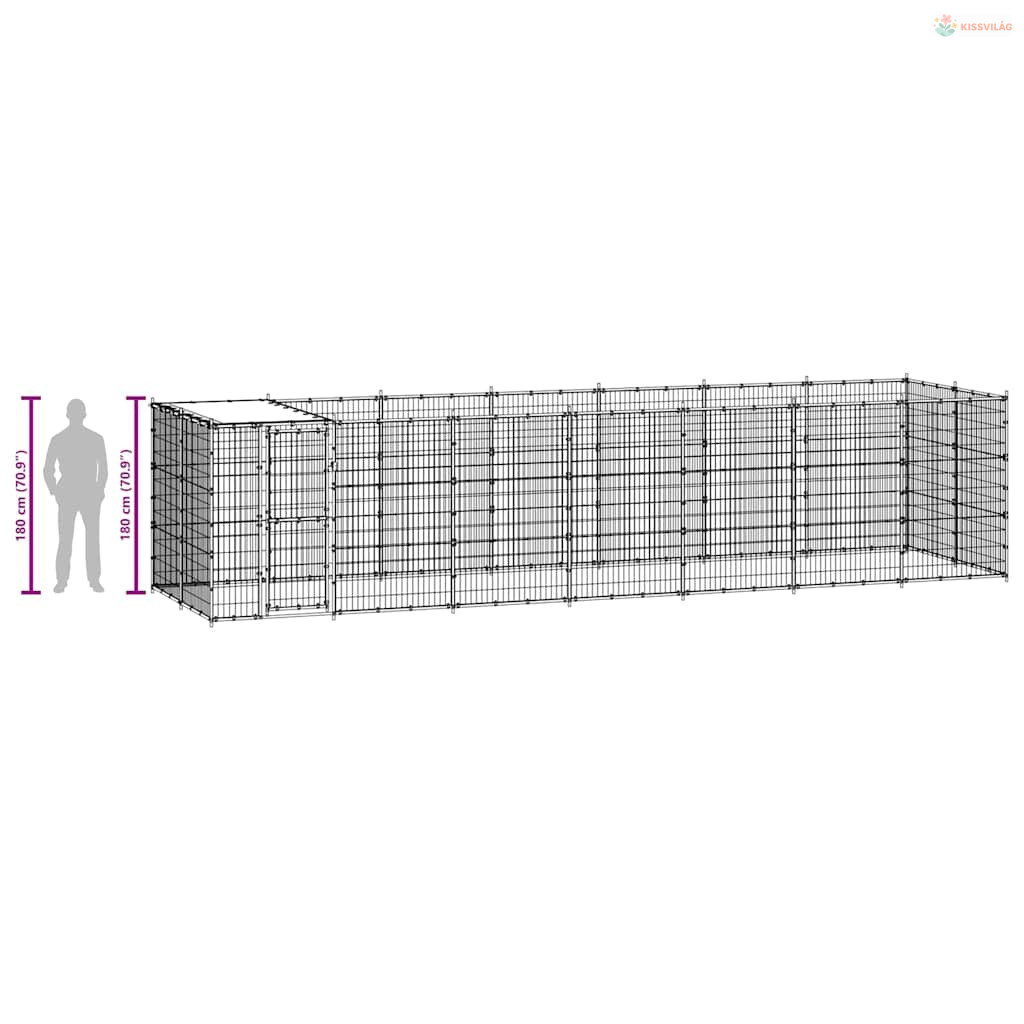 Kültéri horganyozott acél kutyakennel tetővel 16,94 m²