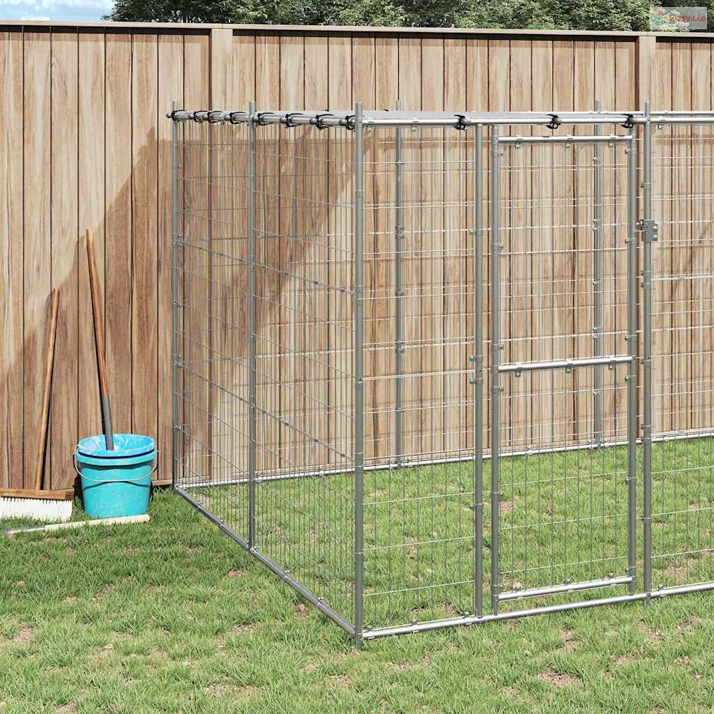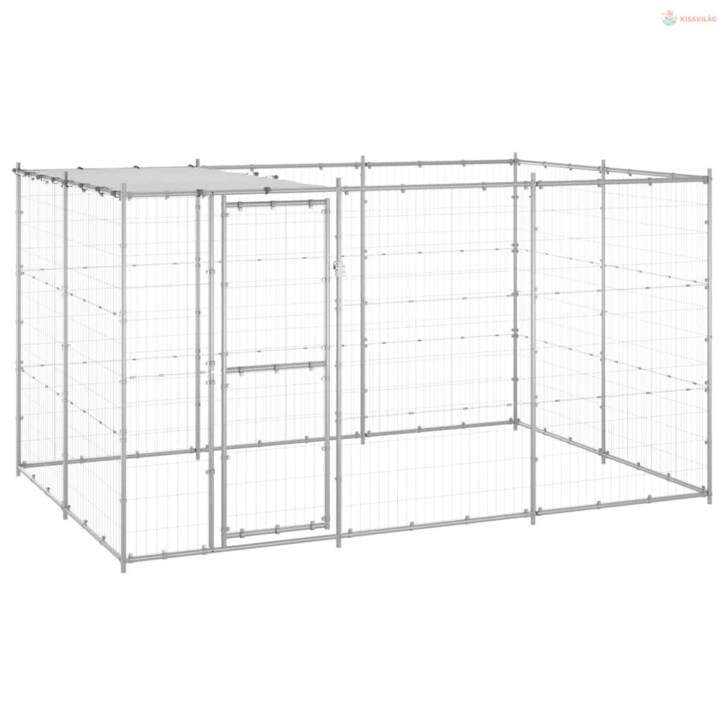 Kültéri horganyozott acél kutyakennel tetővel 7,26 m²