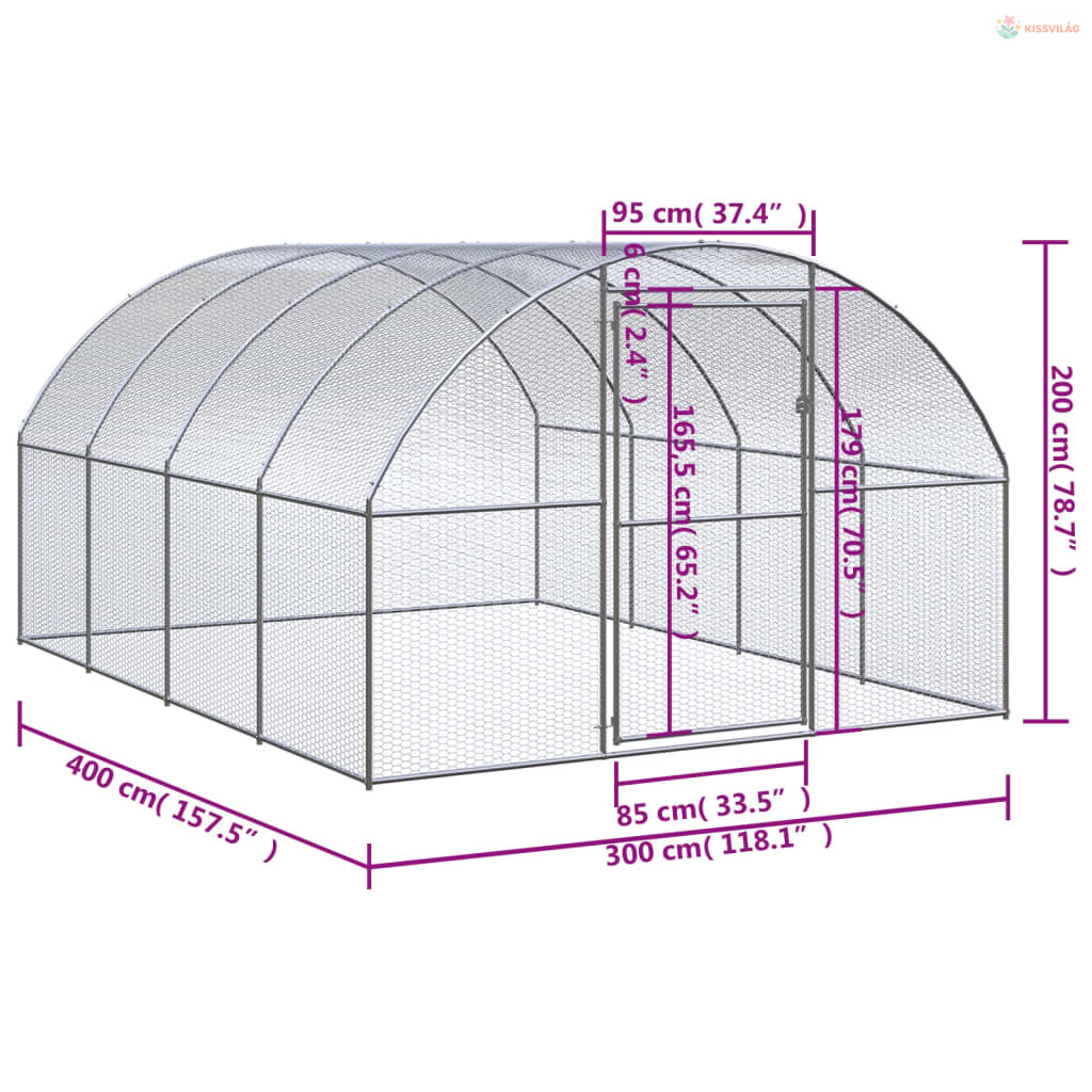 Kültéri horganyzott acél tyúkól 3 x 4 x 2 m