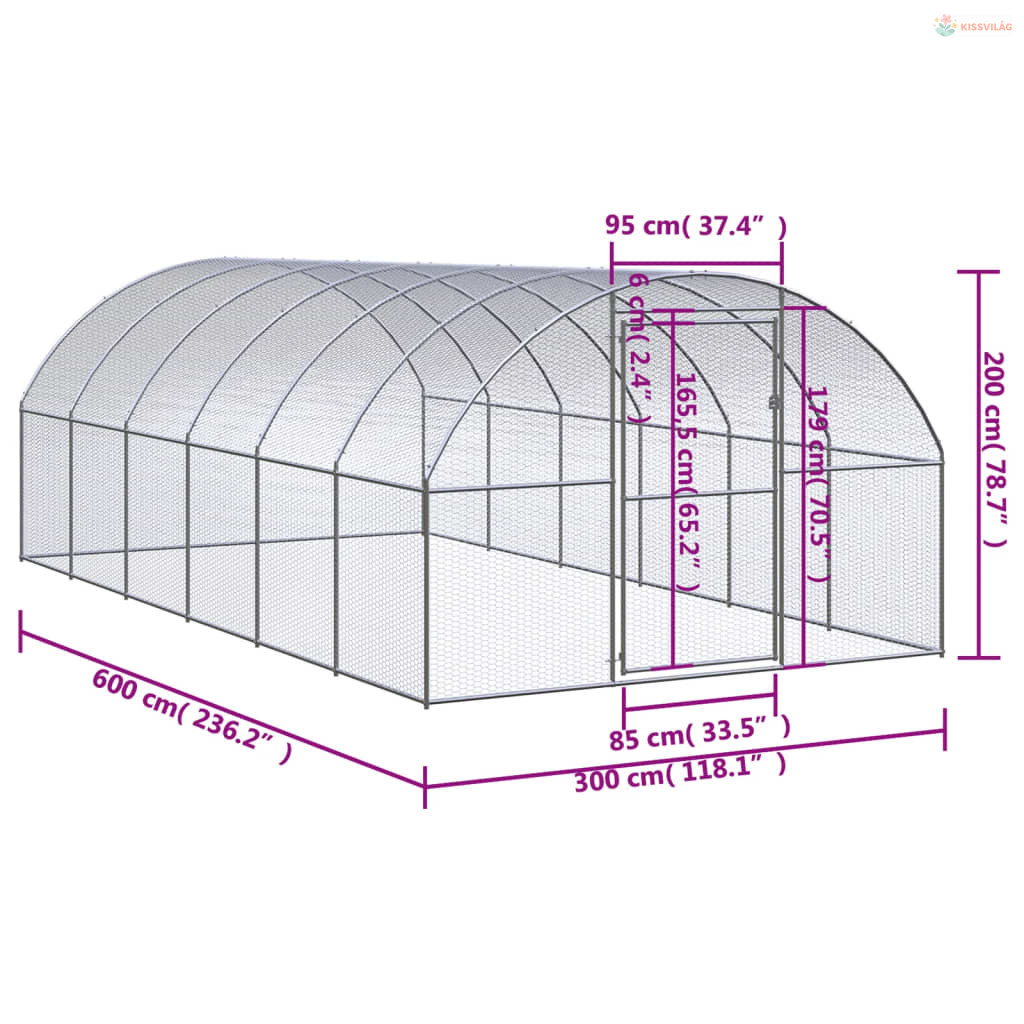 Kültéri horganyzott acél tyúkól 3 x 6 x 2 m