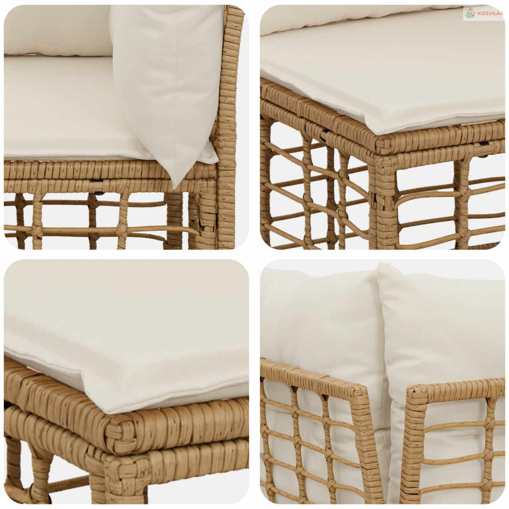 • Poli rattan dizájn: Ez a kanapé szett prémium poli rattanból készült, aminek köszönhetően modern kinézete van, ugyanakkor tartós és ellenáll az időjárásnak. A rattan fonat nemcsak szép, hanem erős is, így bírja a mindennapi igénybevételt.