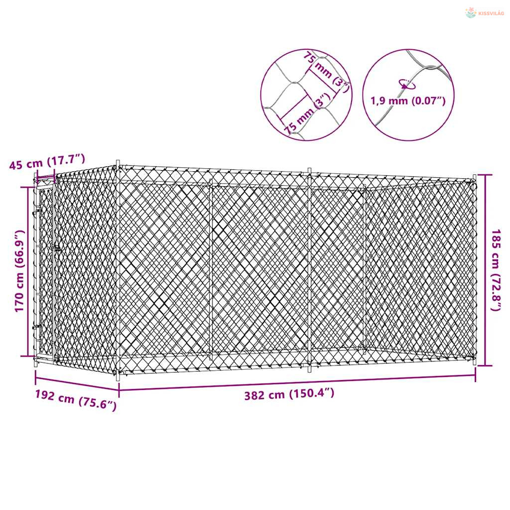Ez a nagy kutyakennel bőséges helyet biztosít, a rácskerítés pedig megakadályozza a kutyák szökését és a baleseteket, miközben állatai elegendő friss levegőhöz jutnak. A nagy teherbírású, horganyzott acélszerkezetnek köszönhetően a kutyakennel tartós, és hosszú éveken keresztül használható. A csuklós ajtó lelakatolható, így gondoskodik az extra biztonságról. A kennel könnyen összeszerelhető.