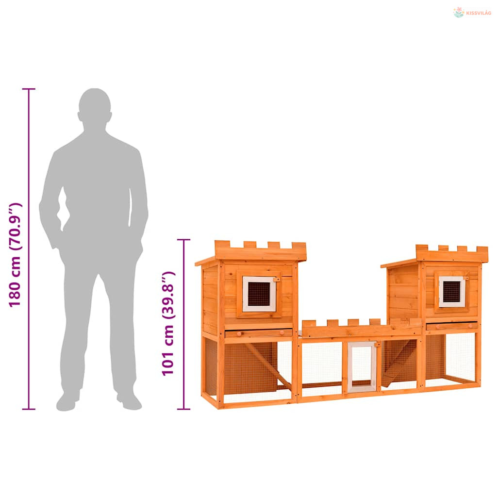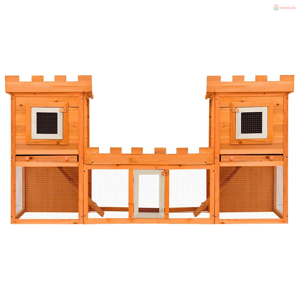 Kültéri nagyméretű nyúlketrec/kisállatketrec két házikóval