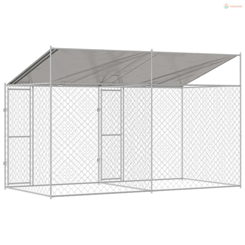 Kutya ketrec tetővel Ezüst 400 x 200 x 256 cm Acél és PE