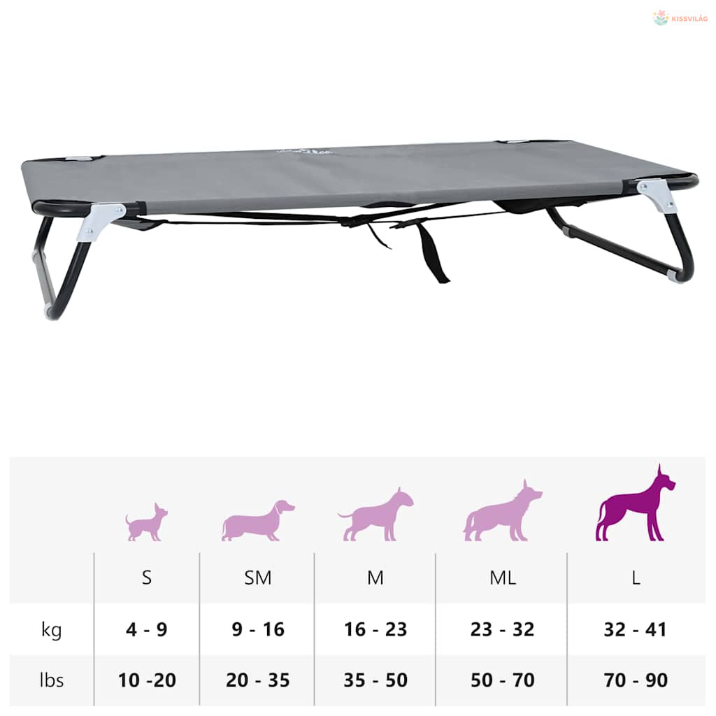 Ez a hajtogatható kutyaágy a lehető legjobban ötvözi a kényelmet és kényelmes megoldást kínál kutyád számára. Legyen benti vagy kinti használatra, ez az ágy klassz megoldás, hogy kutyád jól érezze magát, akár a nappaliban, hálószobában, vagy a teraszon. Az elegáns, mégis egyszerű dizájn bárhol jól mutat, miközben kutyád igényeit tartja a középpontban. Könnyű és hordozható, ez az ágy szuper az úton lévő kutyusoknak, hiszen bármilyen közegben kényelmes helyet ad nekik.