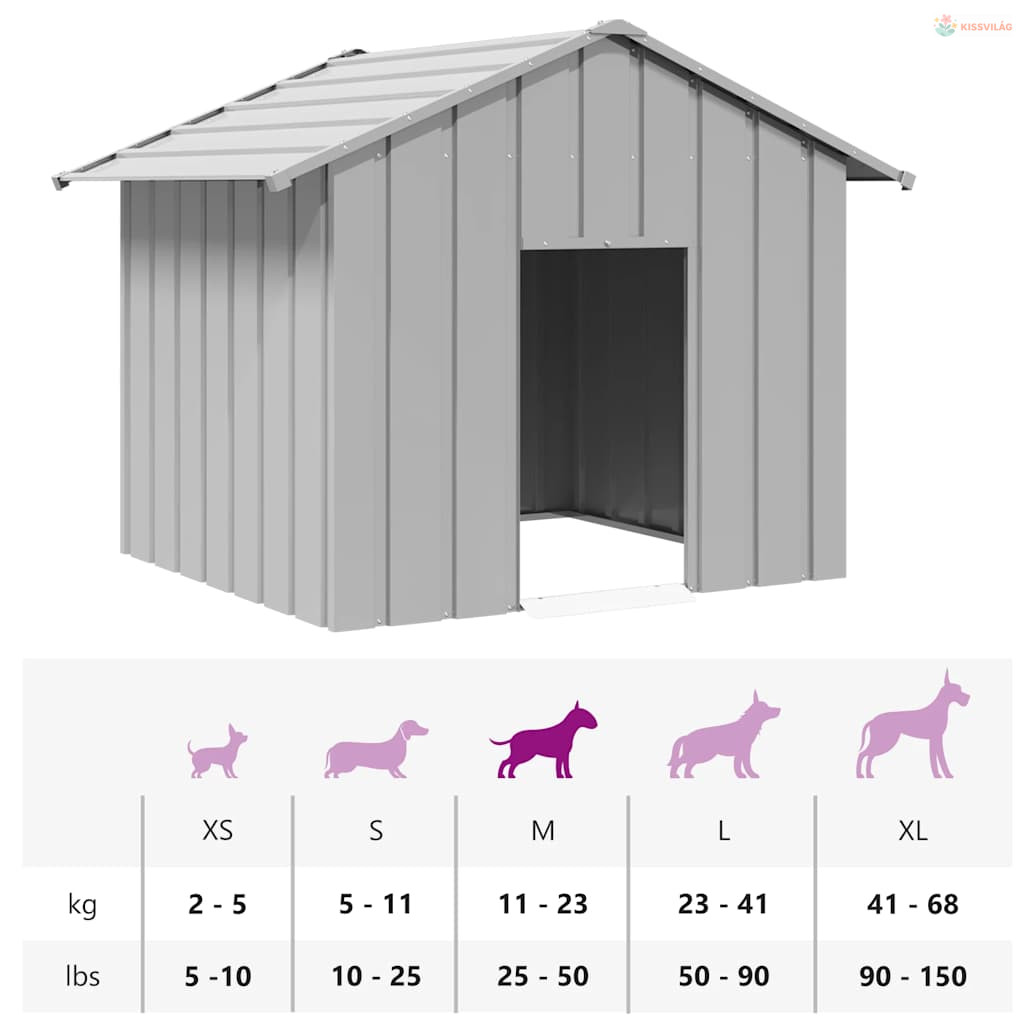 • Tartós konstrukció: A masszív és nagy teherbírású horganyzott acél szerkezetnek köszönhetően a kutyaház tartós és hosszú élettartamú.