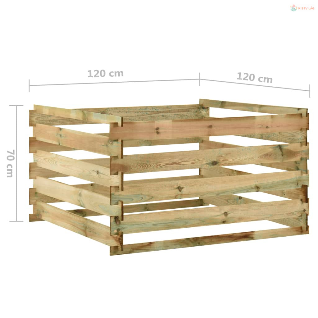 Lécezett impregnált fenyőfa kerti komposztáló 120x120x70 cm