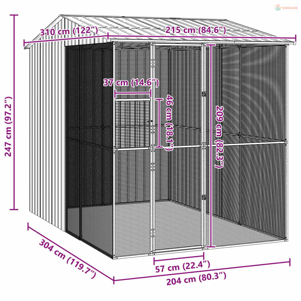 Madár kalitka Antracit 215 x 310 x 247 cm Horganyzott acél