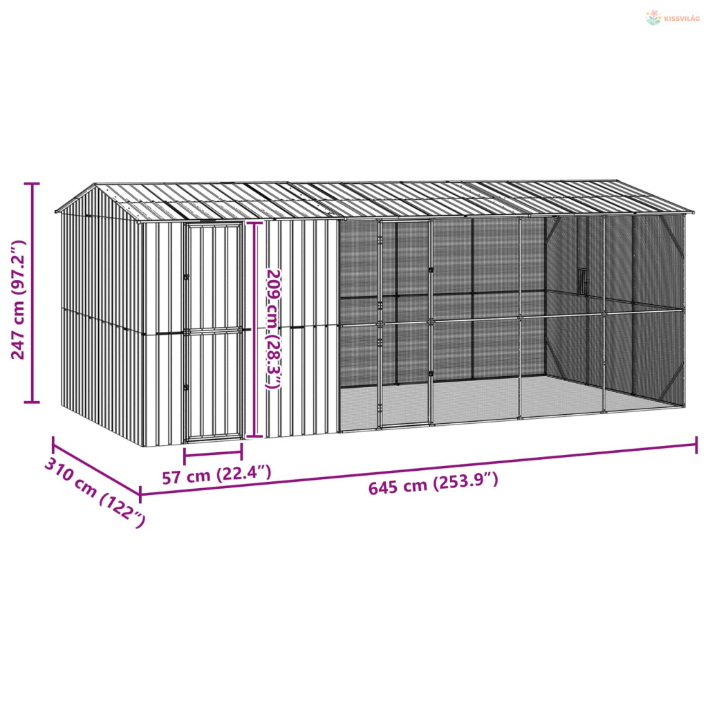 Madár kalitka Antracit 645 x 310 x 247 cm Horganyzott acél