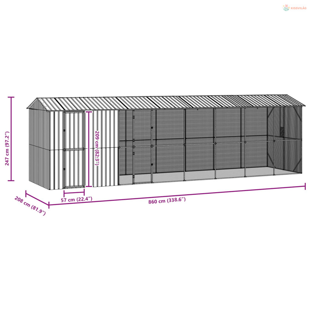 Madár kalitka Antracit 860 x 208 x 247 cm Horganyzott acél