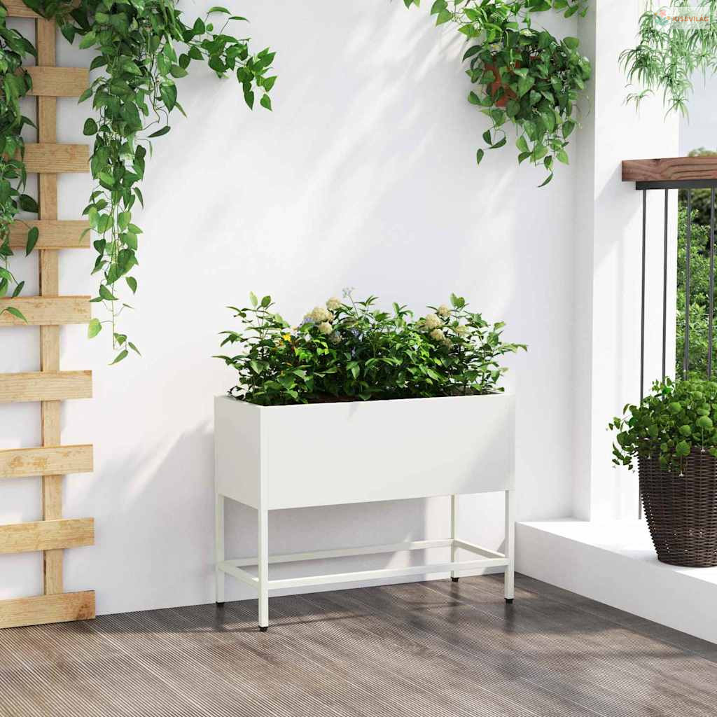 Magas Kerti Cserép Fehér 60 x 26 x 45 cm Acél
