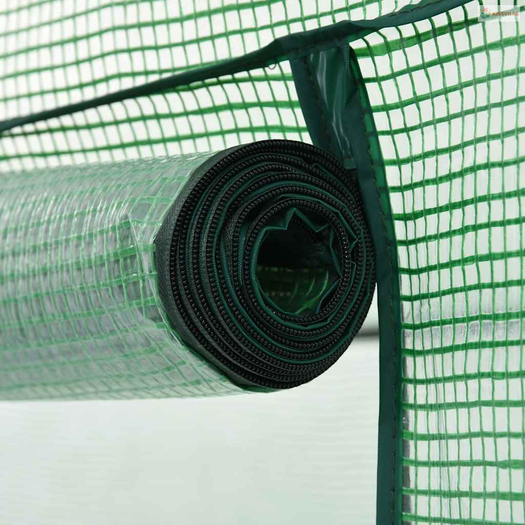 Ez a porszórt acélvázzal rendelkező minőségi melegház nagyon stabil és tartós. Az egy darabból álló, szőtt nylon tető ellenáll az UV-sugaraknak, a ház ajtaja pedig a fokozott szellőzés és a könnyű be- és kijárás érdekében cipzáras. Az átlátszó zöld tető lehetővé teszi, hogy a napfény elérje növényeit és virágait, így a növények maximálisan felhasználhatják a nap energiáját, és melegebb lesz a hőmérséklet. Feltekerhető cipzáras ajtaja és oldalsó szellőzőablaka biztosítja a könnyű hozzáférést és a szellőzést.