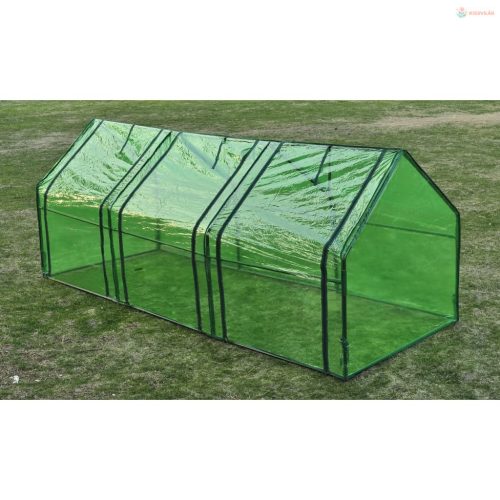 A melegház átlátszó zöld burkolattal rendelkezik, amely lehetővé teszi, hogy a napfény behatolhasson a növények és virágok növekedése érdekében. UV-védett és fagymentes, így az időjárás okozta károk minimálisak. Ezenkívül szakadásálló, gyakorlatilag tönkretehetetlen, így kiváló alternatívája a hagyományos melegháznak.