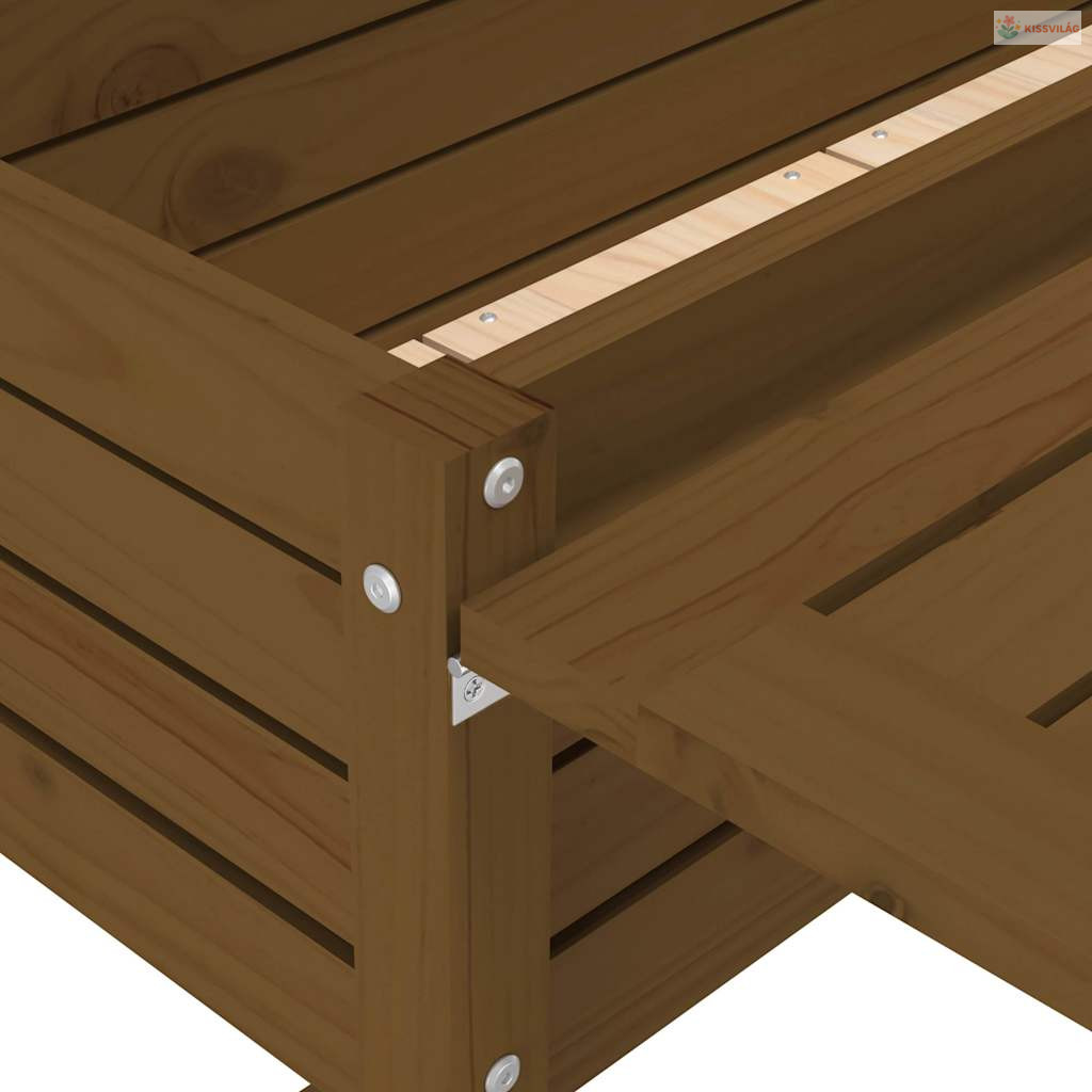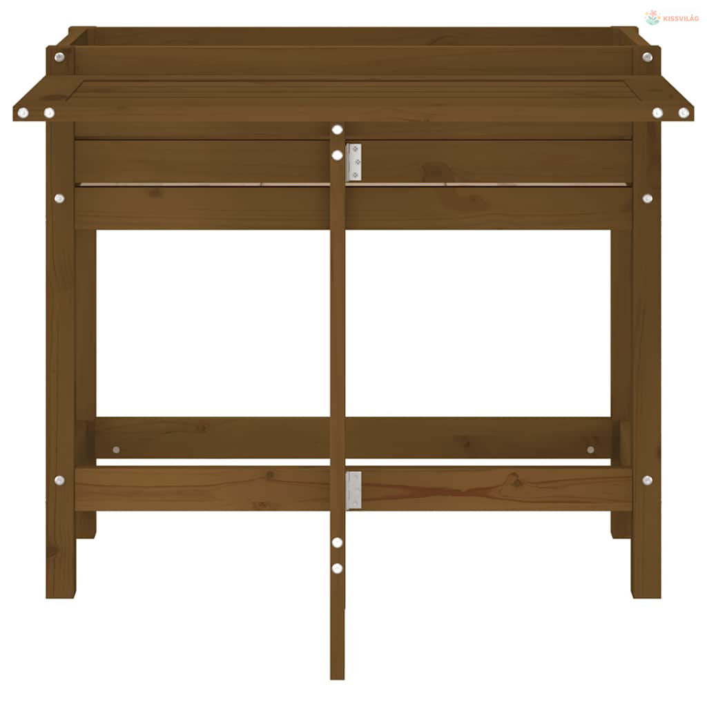Mézbarna tömör fa kerti ültetőláda összecsukható asztallappal
