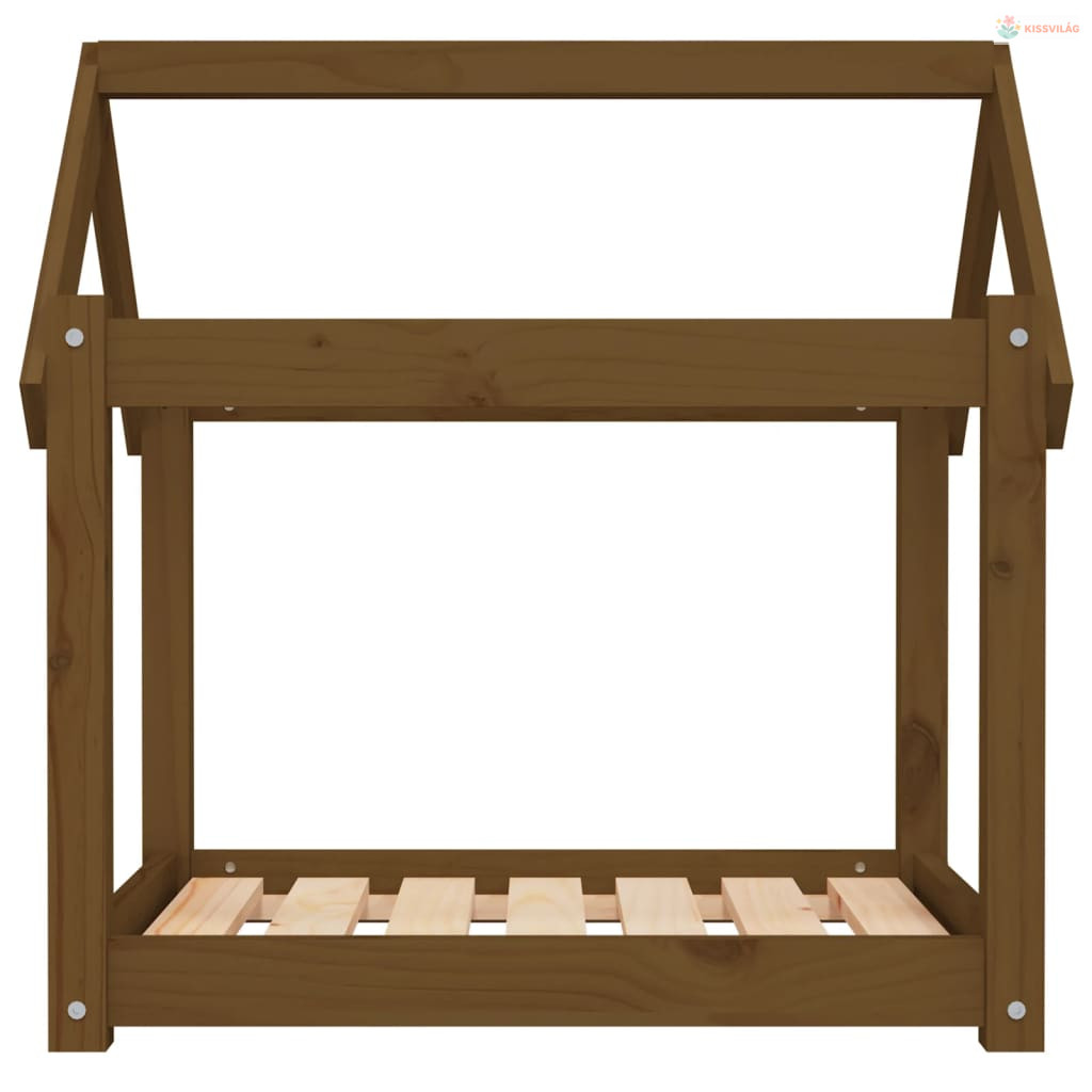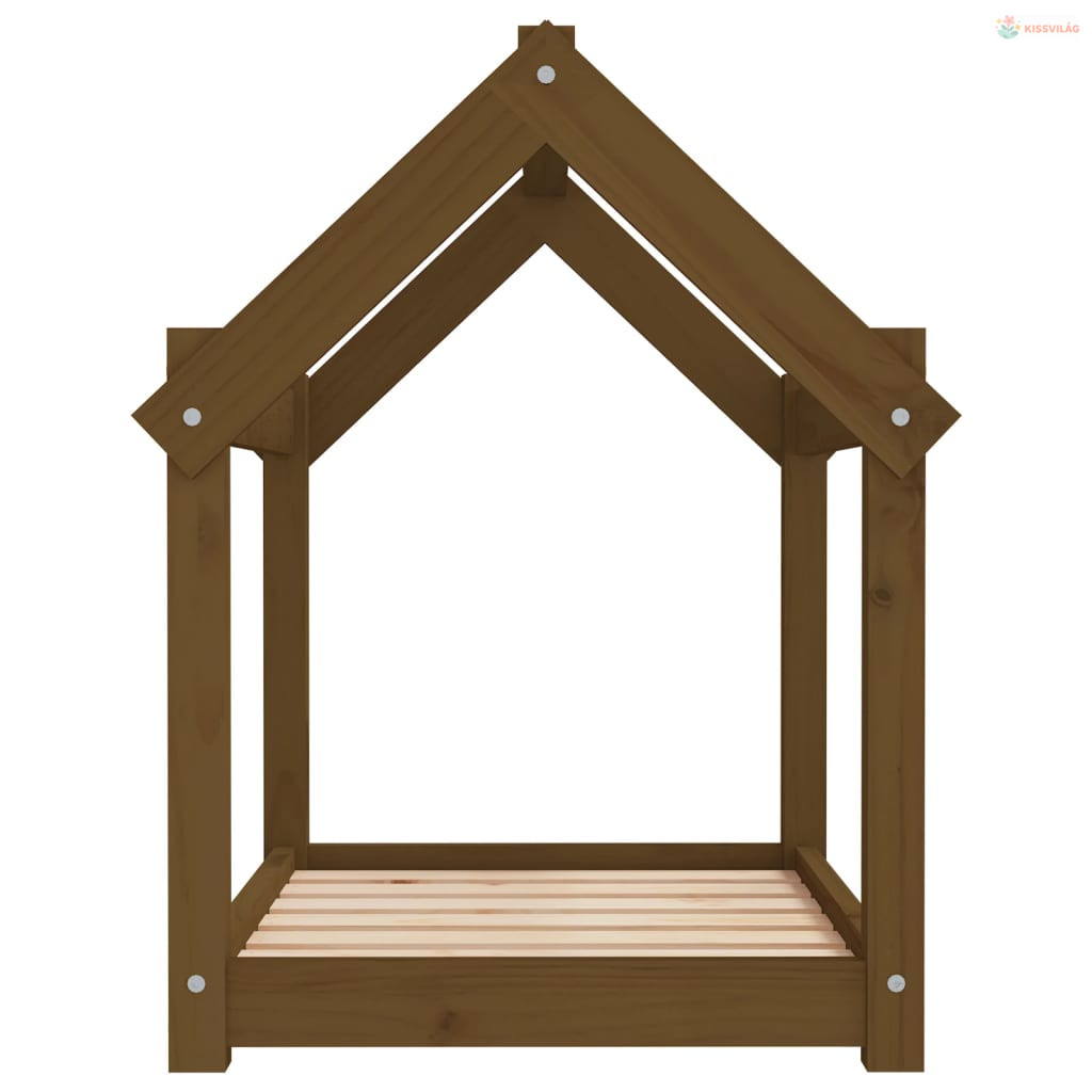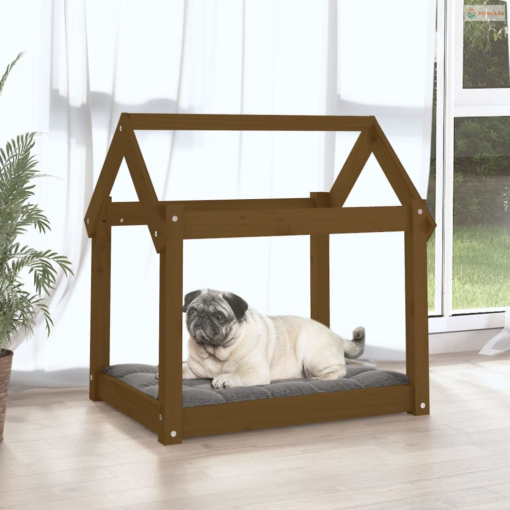 Mézbarna tömör fenyőfa kutyaágy 71x55x70 cm