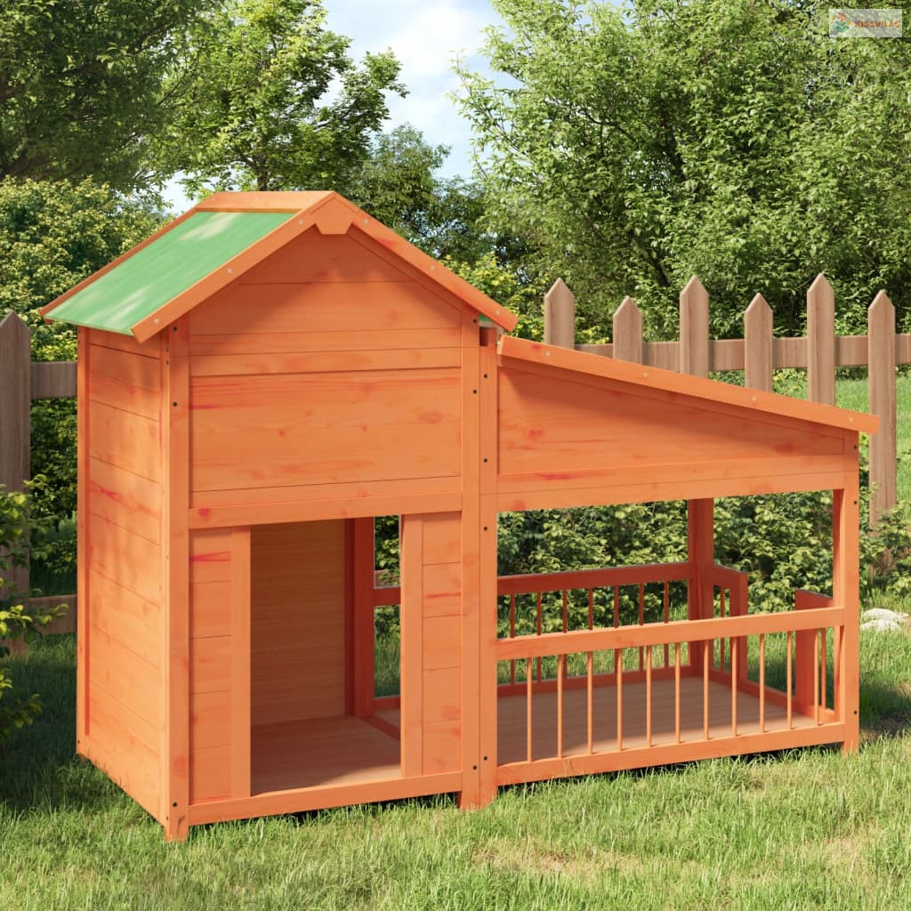 Mézbarna tömör fenyőfa kutyakennel 143x60,5x109 cm