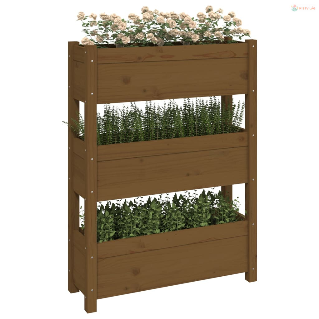 Mézbarna tömör fenyőfa növénytartó 77x25x104,5 cm