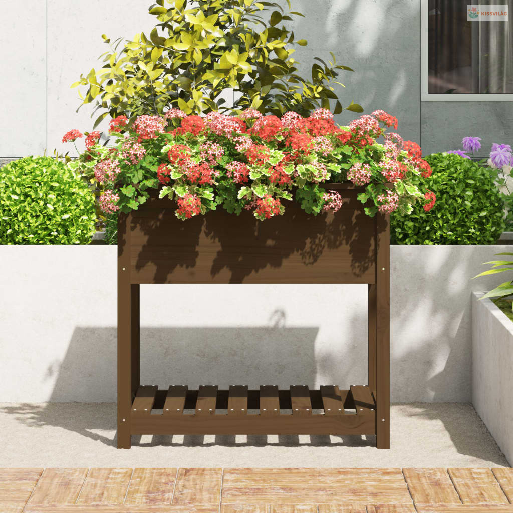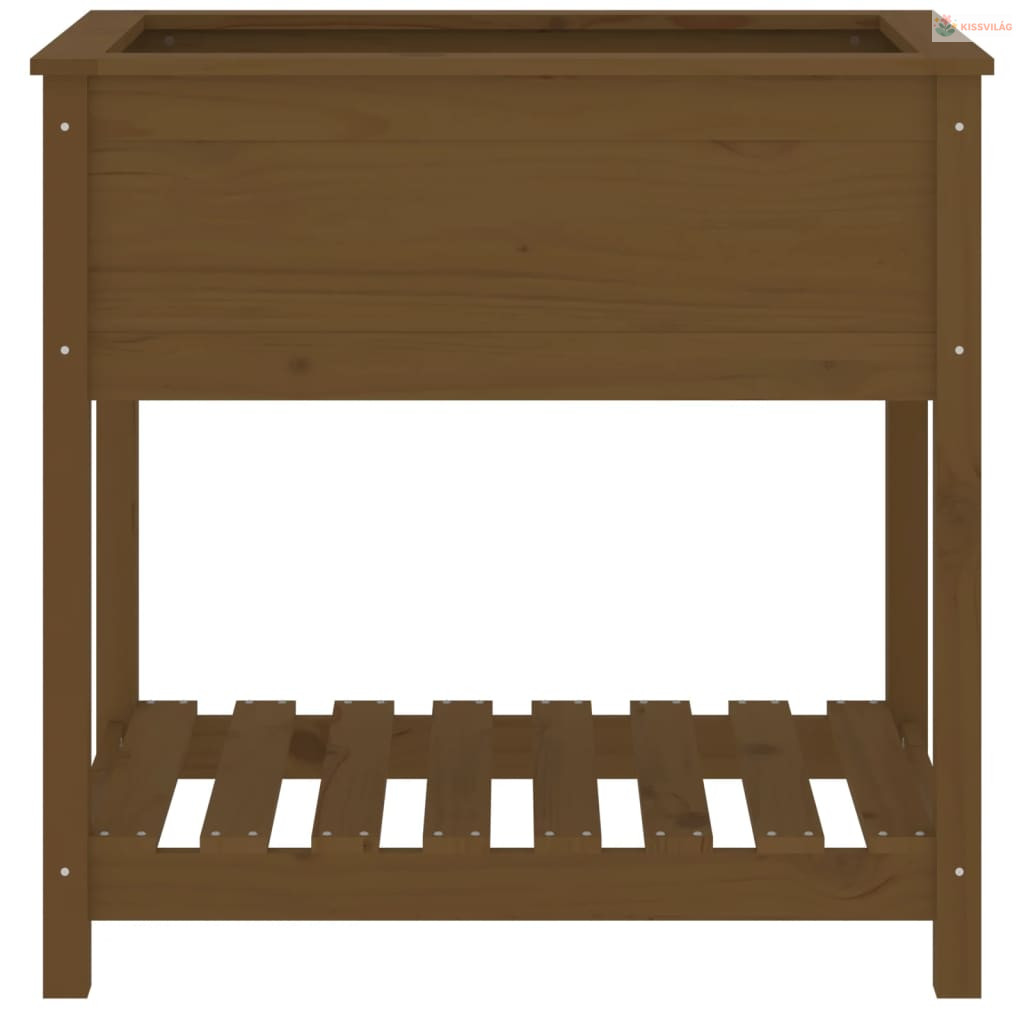 Mézbarna tömör fenyőfa növénytartó polccal 82,5x54x81 cm