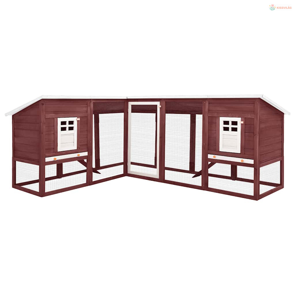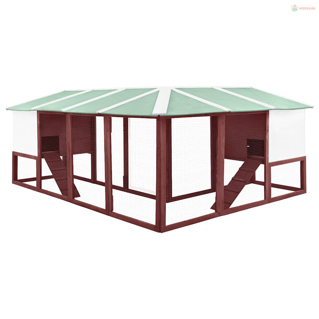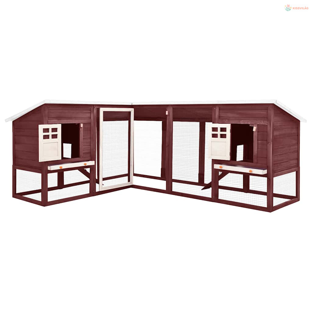 Mokkaszínű és fehér tömör fenyő kültéri nyúlketrec kifutóval