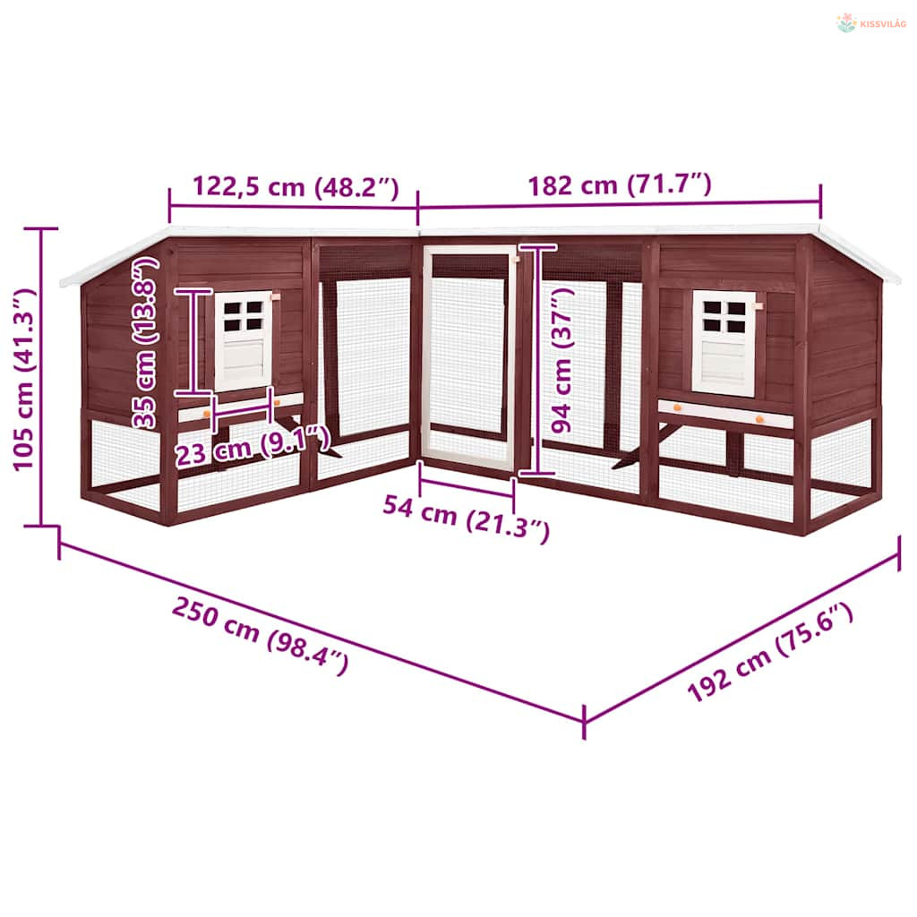 A nyúlketrec két házzal és egy nagyon nagy, horganyzott acél dróthálóval ellátott kifutóval rendelkezik, hogy szemmel tartsa kedvenceit, és megakadályozza a váratlan baleseteket is. A nyulak megfigyelését is biztosítja, és lehetővé teszi számukra, hogy elegendő friss levegőt kapjanak. A kisállatház tömör fenyőfa vázzal rendelkezik, így stabil és tartós. A dönthető tetőt vízálló anyag borítja, így távol tartja az esőt. A búvóhely tökéletes alváshoz. A csúszásmentes rámpa az alsó emelettől a felsőig vezet.