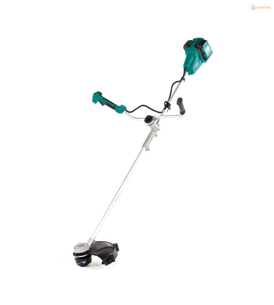 Akkumulátoros bozótvágó, 2 vágási lehetőség - strimmer vagy tárcsa, csendes működés, állítható sebesség és forgásirány, AKUMULTISYSTEM 20V széria, nagy kapacitású akkumulátor, vállheveder.