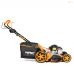 A puha és ergonomikusan kialakított markolatok garantálják a kényelmet munka közben. A fogantyú alatt praktikus ital tartó és apróságok találhatók. A nagyméretű első és hátsó golyóscsapágyazott kerekeknek köszönhetően, amelyek csökkentik a gördülési ellenállást, a fűnyíró könnyen manőverezhető.