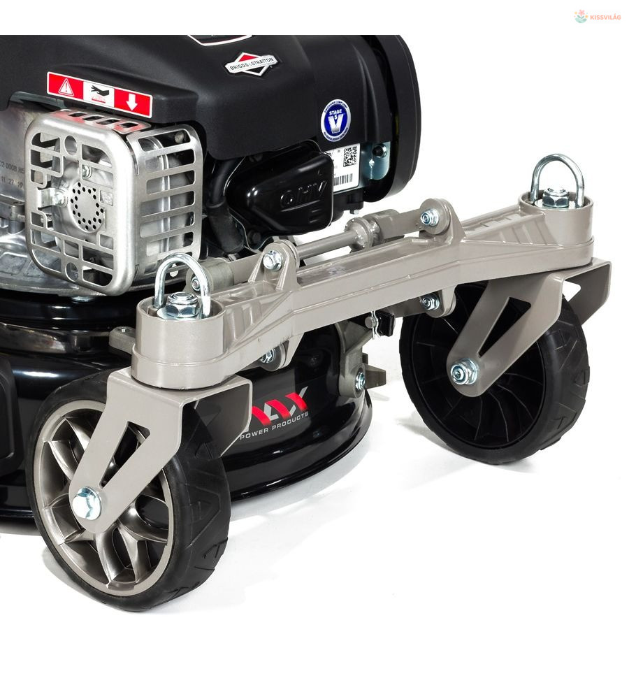 Benzines fűnyíró megbízható és tartós 125 cm3-es motorral, Briggs & Stratton motor, oldalsó és hátsó ürítés, mulcsozó funkció, belső burkolatmosó rendszer, állítható vágási magasság.