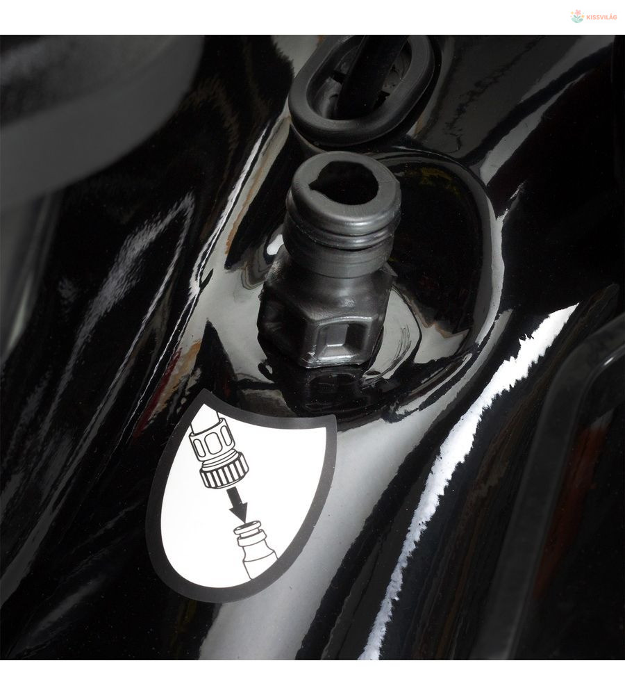 A burkolatmosó rendszer gondoskodik a fűnyíró belső vázának egyszerű és gyors mosásáról. Csak csatlakoztasd a kerti tömlőt a gyorscsatlakozóhoz, és engedd rá a vizet.