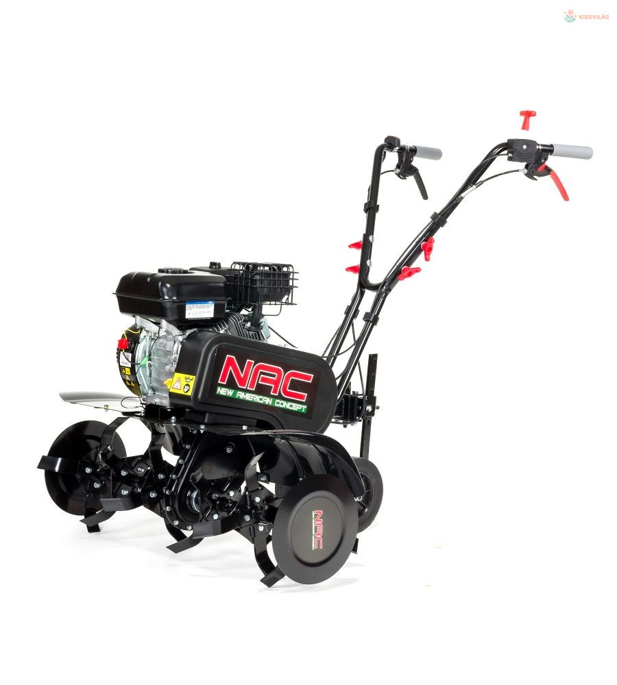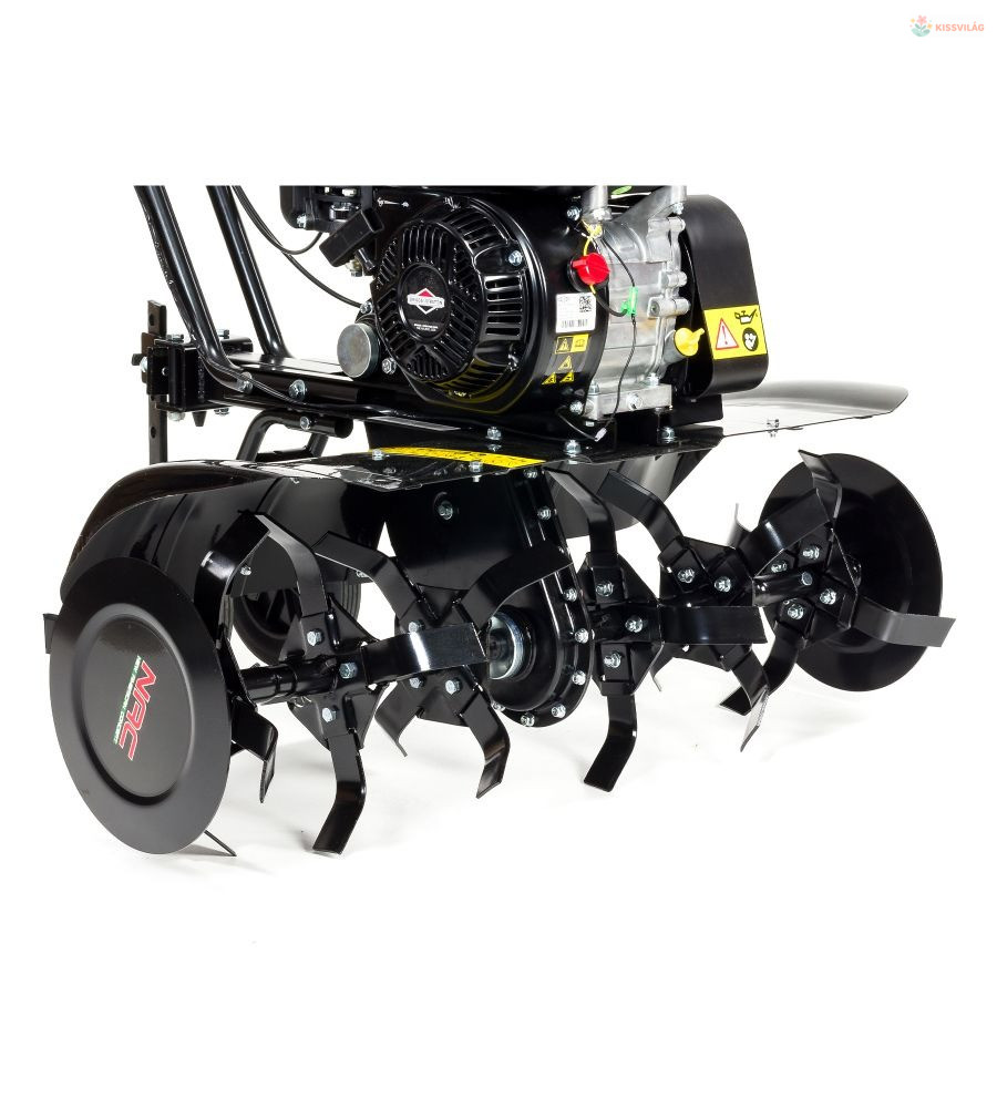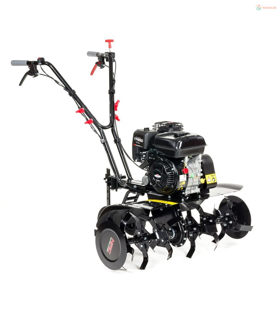 Kerti kultivátor, erős 4 ütemű motorral, 2 sebességfokozatú. Ütésálló fémszerkezet, ergonomikus fogantyúk és 2 hátsó támasztókerék.Forgótengelyen 24 penge a talaj porhanyítására és lazítására. Agyagos talajhoz is alkalmas. Alacsony fogyasztás.
