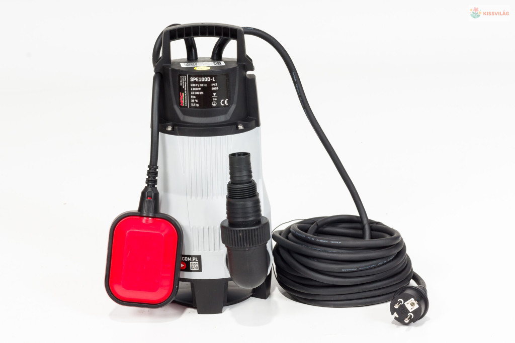 A pincéből, kútból vagy csatornából kell vizet szivattyúzni? Szerezze be az SPE100D-L merülő iszapszivattyút, amely1000 W-os elektromos motorral rendelkezik. A Minőségi tok még a szennyezett víznek is ellenáll. Használhatja medencék, tavak vagy esővíztartályok ürítéséhez is. Akár 16 000 l/h-t képes felszívni, és 35 mm átmérőjű szennyeződést is elbír. Legfeljebb 7 méter mélységbe merítheted.